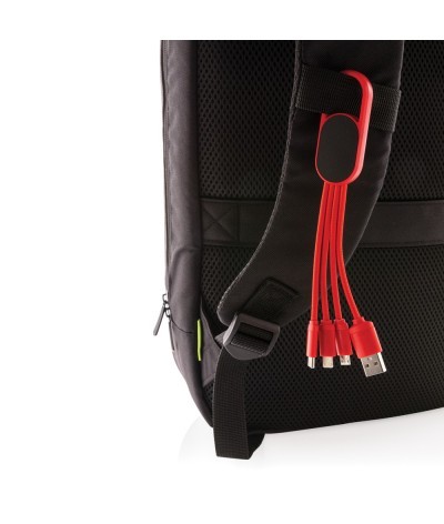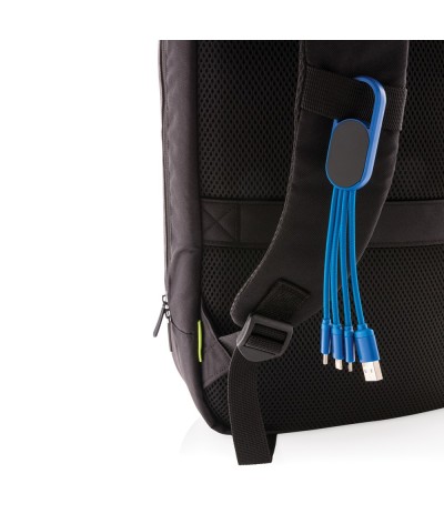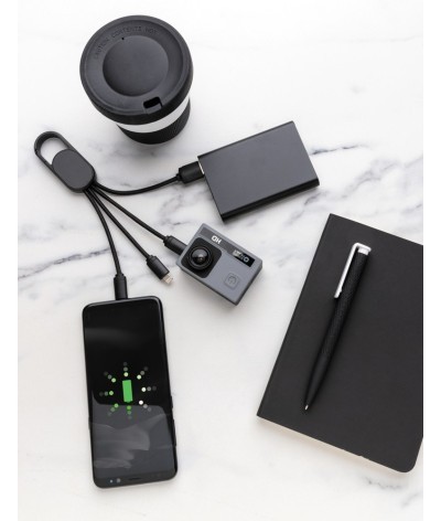 Câble de chargement 4 en 1 en ABS. Prise d'entrée USB et pour la sortie : connecteur double face pour les appareils IOS, micro USB et sortie de type C.