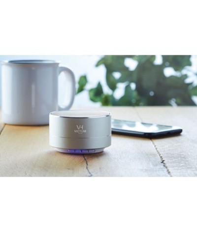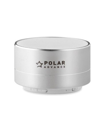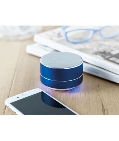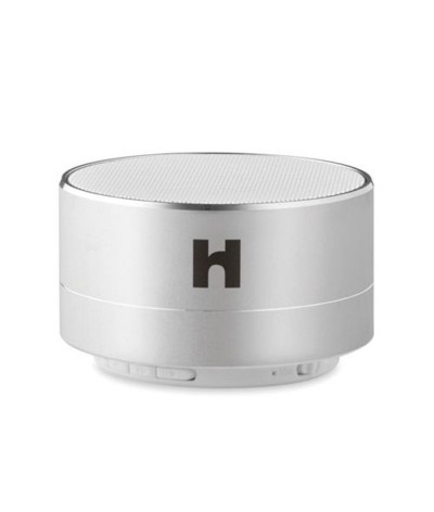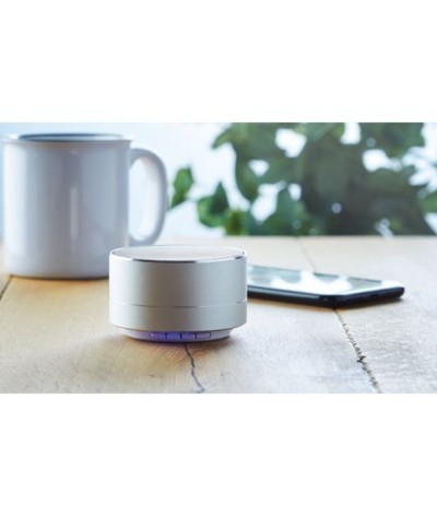 Haut-parleur sans fil 4. 2 en aluminium avec batterie rechargeable Li-on 450mAh et lumière au bas du haut-parleur. Données de sortie: 3W, 4 Ohm et 5V. Câble micro-USB inclus.