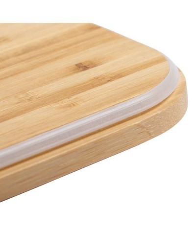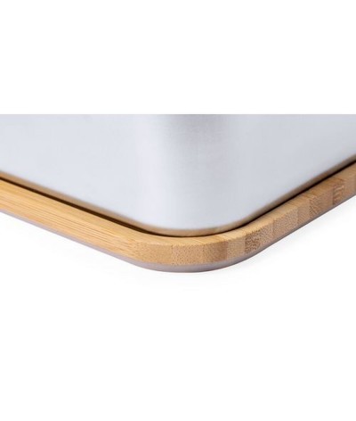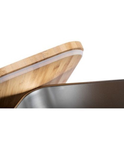 Lunch box en acier inoxydable avec couvercle en bambou naturel.