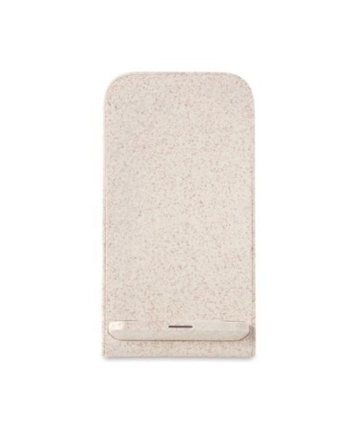Support de mobile et chargeur sans fil à double bobine biosourcé à base 35% de paille de blé et 65% d’ABS. Placez le smartphone dessus pour commencer à charger.