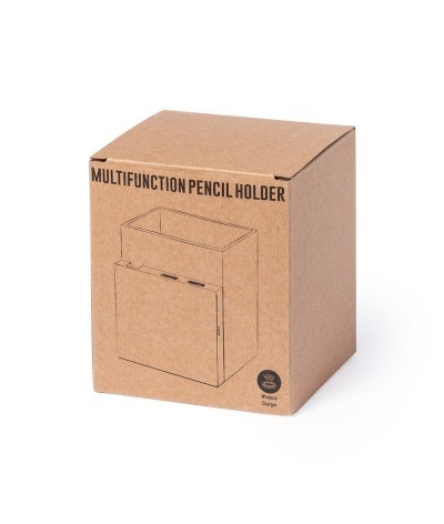 Porte-crayons multifonction 4-en-1 de la gamme éco-friendly, fabriqué en carton recyclé, contribuant à la conservation des forêts et réduisant considérablement l´empreinte carbone. Avec fonctions de stylo, support pour smartphone, chargeur sans fil et port USB (2xUSB 2.0). Pliable et avec réglage magnétique. Compatible avec les smartphones dotés de la technologie de charge sans fil. Comprend un câble micro USB blanc d´un mètre de long. Présenté dans une jolie boîte éco-conçue, avec un manuel d´instructions en anglais et en espagnol.