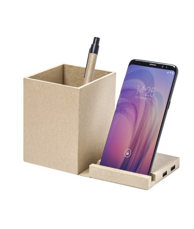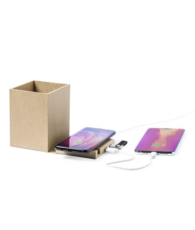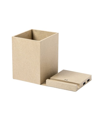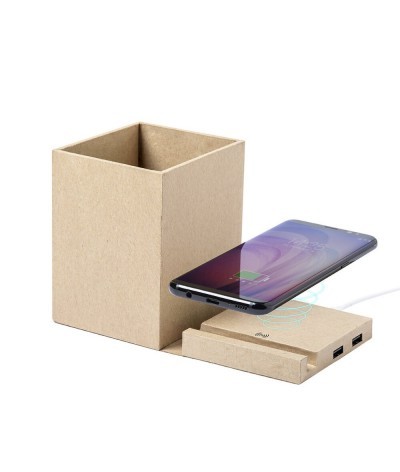Chargeur à induction avec porte-crayons et hub USB carton recyclé