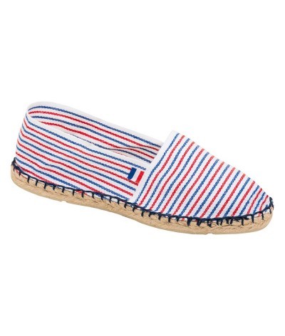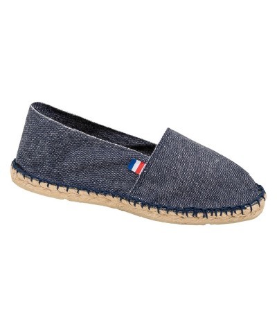 Espadrille en toile 100% coton avec semelles en caoutchouc vulcanisé et jute.