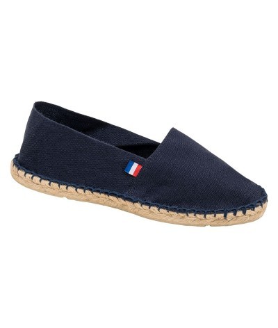 Espadrille en toile 100% coton avec semelles en caoutchouc vulcanisé et jute. Fabrication artisanale semelles vulcanisées, montage, couture et coupe fait en France.