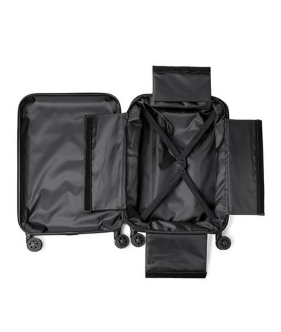 Valise cabine extensible avec poignée télescopique. Idéal por vos voyages Quatre roues pivotantes. Tissu extensible en RPET. Compartiment principal avec sangle de fixation pour les vêtements.