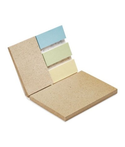 Bloc-notes à couverture souple de 25 feuilles de papier fabriqué à partir d'herbe avec des marqueurs 3 couleurs.