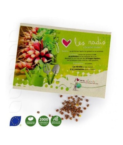 Sachet en fibre de tomates (87,09 x 120 mm) contenant une dose de graines (graines fines fleurs, aromates, légumes).