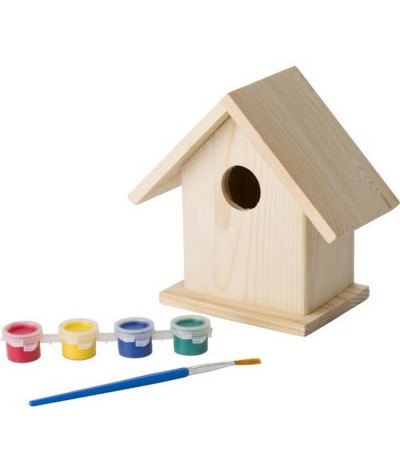 Nichoir en bois à décorer pour oiseaux, et autres.... Livré avec un set de peinture et un pinceau.