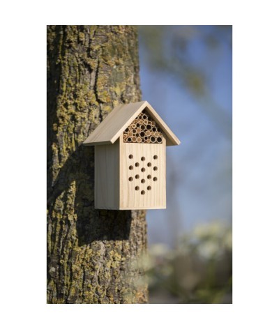 Abri pour abeilles en pin et roseau avec crochet. Livré dans une boîte cadeau.