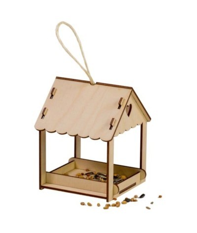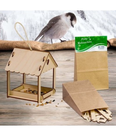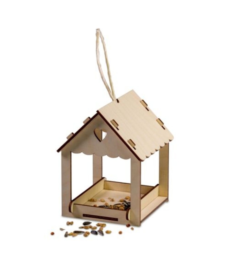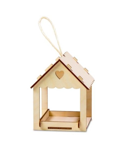 Cette maison en kit, une fois assemblée, devient un nichoir que l'on accroche à l'extérieur avec la cordelette fournie. Elle est emballée dans un sachet en papier écologique fermé avec un cavalier carton personnalisé en quadri.