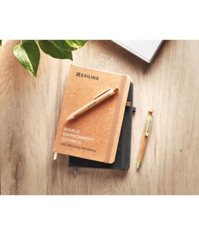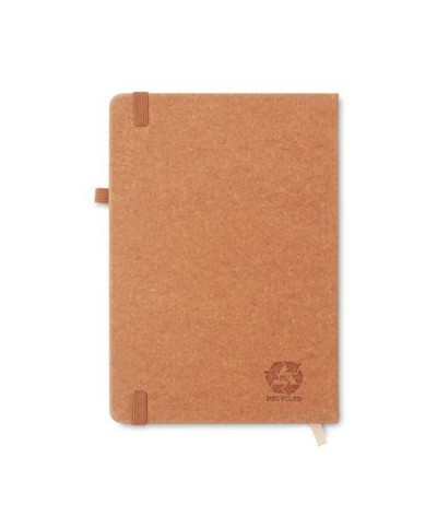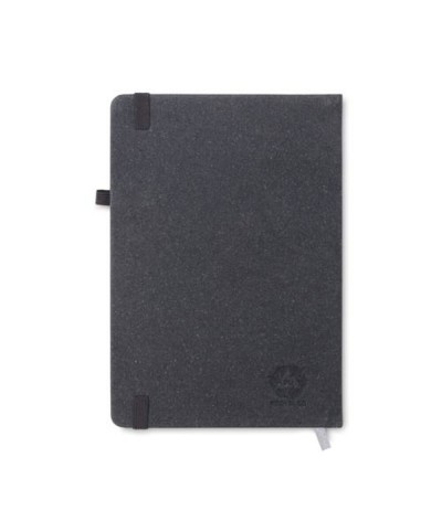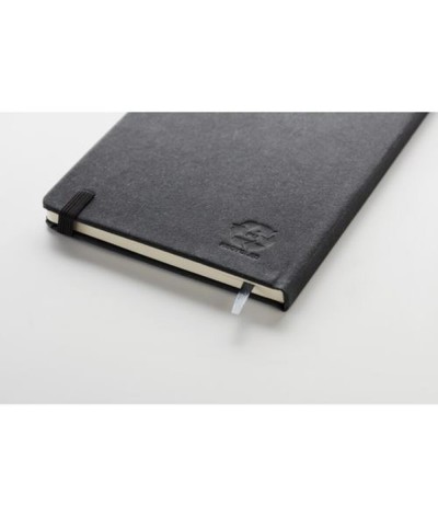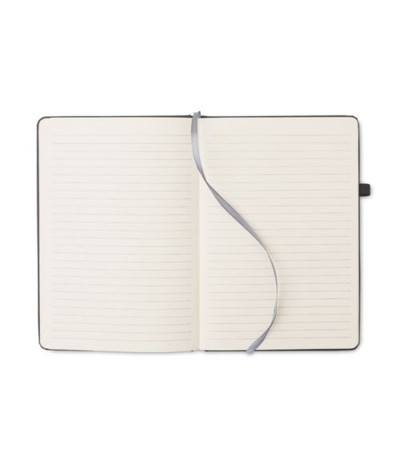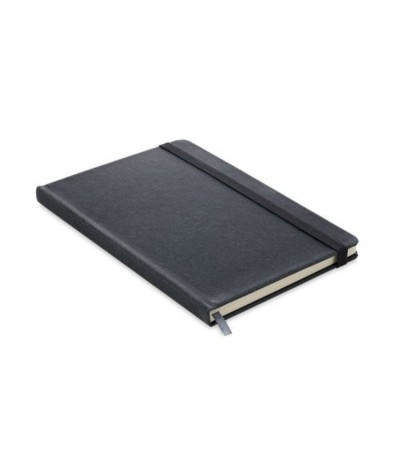 Carnet A5 avec couverture en PU recyclé et 80 pages lignées fermées par un élastique.