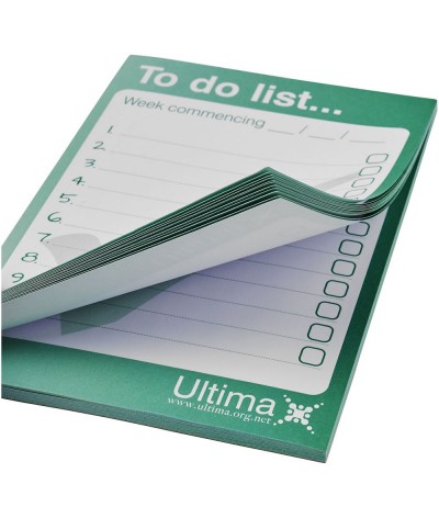 Bloc-notes A6 blanc. Inclut des feuilles de papier vierge de 80 g/m². Version standard avec 50 feuilles, également disponible avec 25 ou 100 feuilles. Marquage personnalisé sur chaque page... Suite dans la description