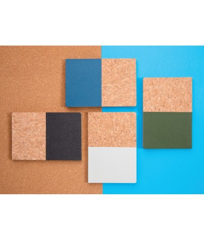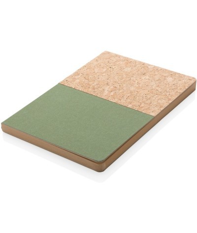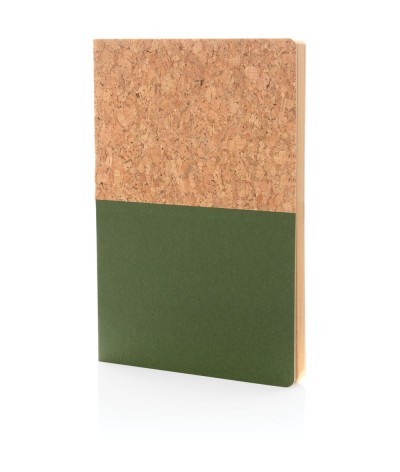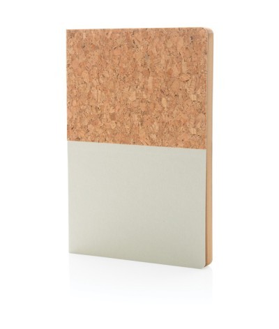 Carnet A5 à couverture rigide en liège naturel et kraft. 80 feuilles/160 pages de 80 g/m2. Les pages sont à base de papier recyclé.