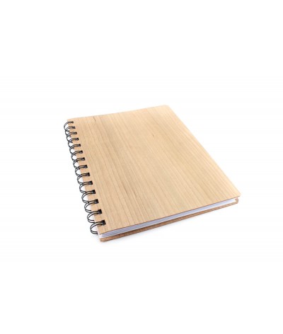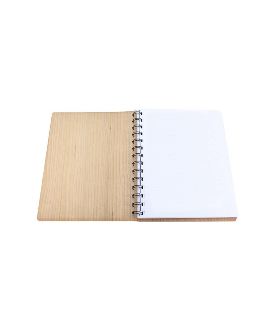 Cahier carnet à spirales couverture bois, fabriqué en France.