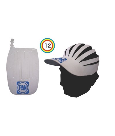 Casquette en carton à monter. Matière première naturelle certifiée FSC et PEFC. Plusieurs modèles de découpe sont possibles suivant la forme souhaitée (voir photos). Nous consulter.