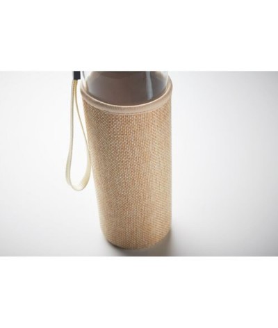 Gourde/bouteille en verre dans une housse en néoprène et jute.