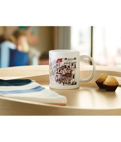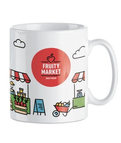 Mug céramique de 300 ml avec revêtement spécial pour sublimation. Emballage individuel dans une boîte en carton blanc.