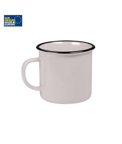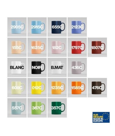 Mug sur-mesure 280 ml Made in Europe. Blanc, noir ou 21 coloris de glaçure. Base logo < 20 cm2 - 100cm 2 et all over en option. Possible en Livraison Express.