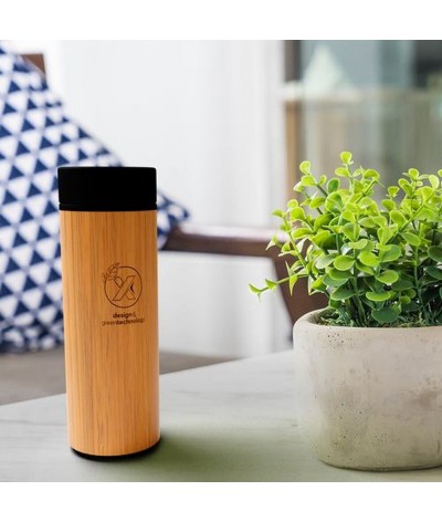 Bouteille isotherme 400 ml en acier inoxydable double paroi et bambou.