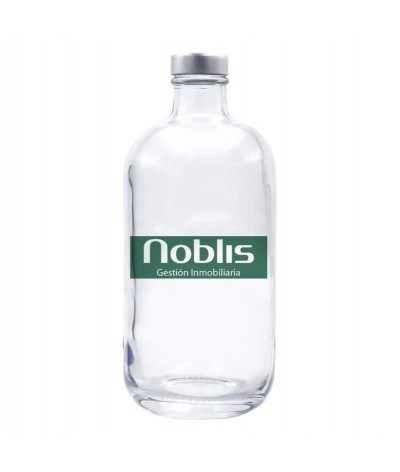 Bouteille en verre à remplir d'une capacité de 500 ml,, avec bouchon à vis en argent ou noir. Disponible dans une ou deux couleurs, laser ou sans personnalisation. Disponible en 700 ml.