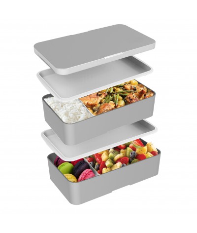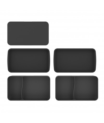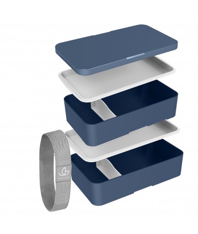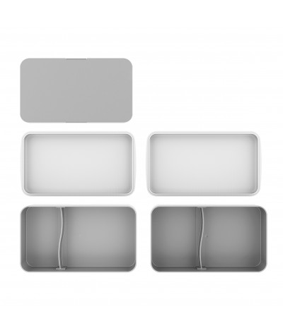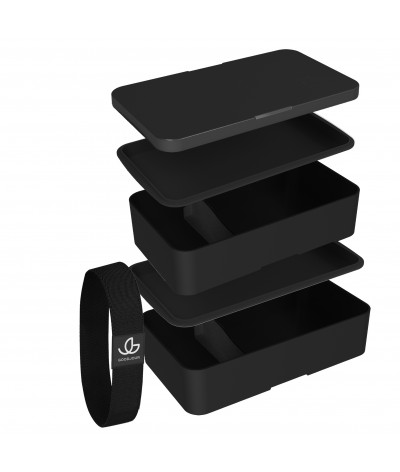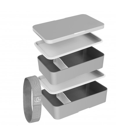 Composition • 1 couvercle (PPh) • 2 compartiments (PPh) • 2 couvercles intermédiaires (Pebd) • 1 élastique (élasthanne).