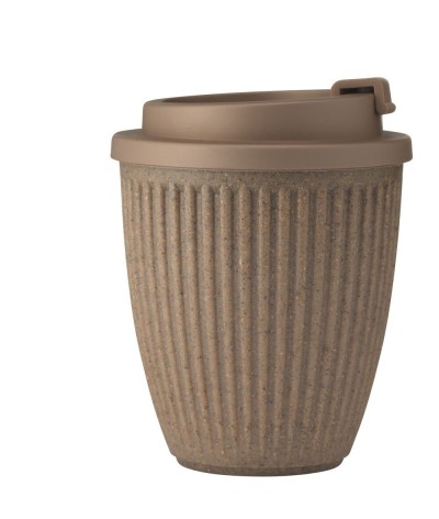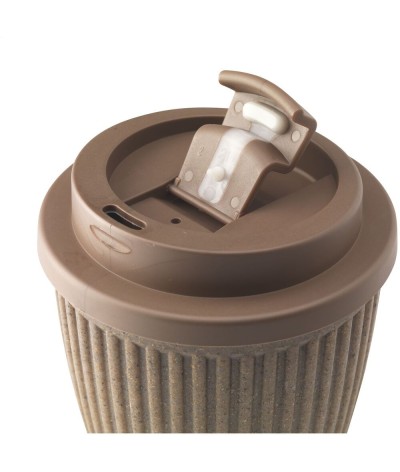 Gobelet isotherme à double paroi est fabriqué à partir de marc de café et de déchets de canne à sucre. Ce gobelet durable est doté d'un couvercle à visser avec une ouverture pour boire et une fermeture intégrée pour éviter les fuites indésirables.