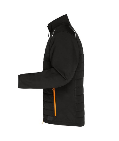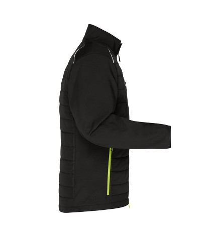 Cette veste "hybride" polyvalente, est composée d'un tissu softshell à deux couches, facile à entretenir, avec des inserts cousus à l'avant et à l'arrière. Elle est dotée d'une finition déperlante et anti-salissures à nanoparticules. L'avant et le dos de la veste sont matelassés avec un rembourrage renouvelable, durable, confortable et à séchage rapide en DuPont Sorona®( Fibres issues de ressources renouvelables et permettant le maintien de la chaleur).