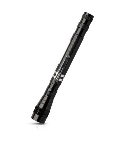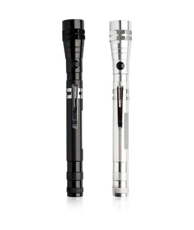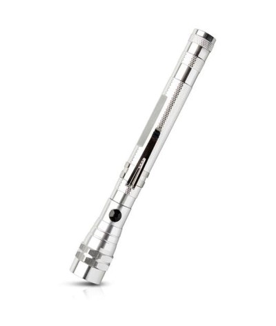 Lampe de poche en aluminium extensible avec deux pointes magnétiques.
