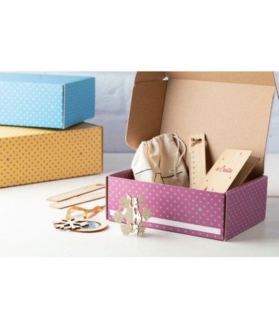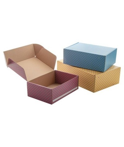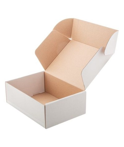 Boîte-cadeau postale en carton ondulé imprimée en quadri sur mesure avec bande autocollante. Livrée à plat. Autres formats possibles, consultez-nous