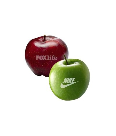 Pomme rouge ou verte, origine Europe. Personnalisation directe de couleur blanche, rouge ou noire.