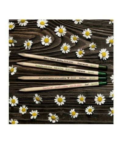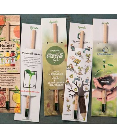 Son extrémité contient une capsule avec des graines à choisir parmi de nombreuses variétés : Tournesol, basilic, coriandre, thym, pâquerettes, sauge, tournesol, tomate cerise, myosotis, pâquerette,... (sous réserve des stock à la commande) avec la possibilité de mixer par lot de 100.
