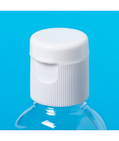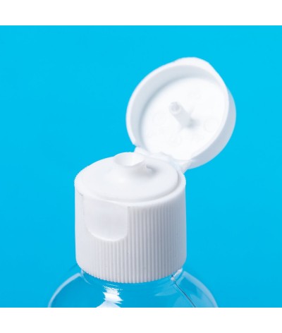 Solution hydroalcoolique pour le nettoyage des mains, flacon de 30 ml, avec un bouchon blanc et flacon transparent, bouchon de sécurité avec mousqueton pour facilité le transport/ fixation.