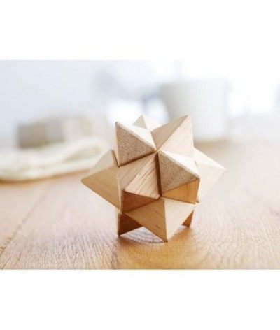 Casse-tête en bois en forme d'étoile avec sa pochette.