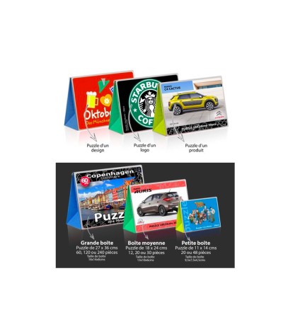 Plusieurs dimensions de Puzzle et nombre de pièces disponibles :