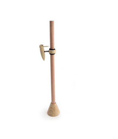 Crayon bois ludique en bois tilleul - diamètre 7 mm et hauteur 18 cm - avec picvert sur ressort pour glisser le long du crayon - Fabrication européenne assemblée en France
