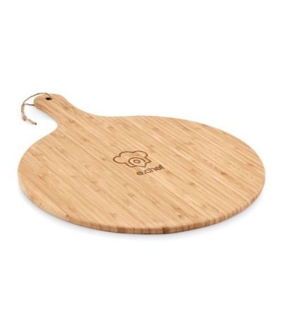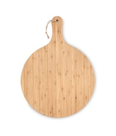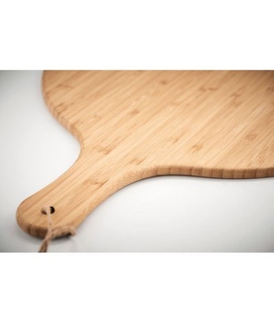 Planche à découper et pour le service en bambou avec poignée. Cordelette de jute.