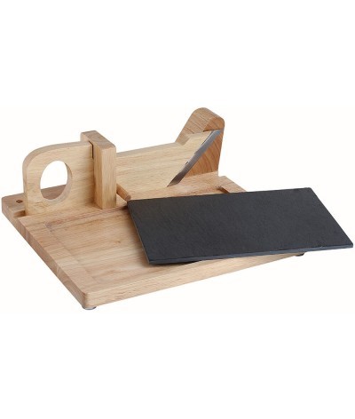 Tranchez et dégustez vos saucissons préférés, et apéritifs. En bois d'hévéa et plateau en ardoise Lame en acier inoxydable Découpe facile grâce à la poignée Goupille de rangement
