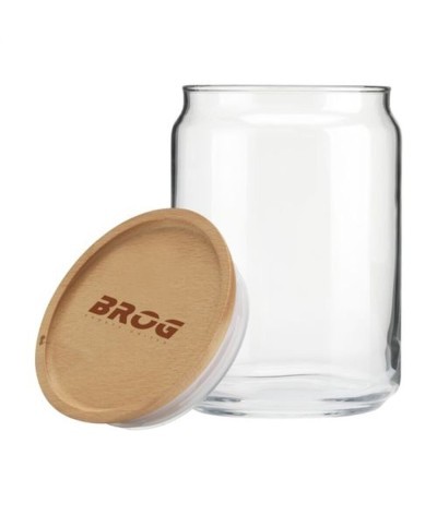 Bocal de conservation en verre transparent. Fourni avec un couvercle en bois équipé d'une rondelle en silicone pour aider à garder le contenu frais. Capacité 1.000 ml.