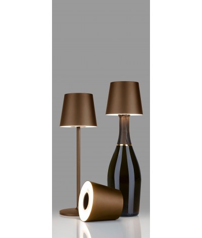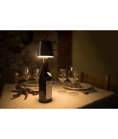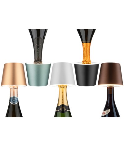 Lampe abat-jour à LED rechargeable et portable pour l'extérieur et l'intérieur, qui peut se placer et s'adapter facilement sur le goulot d'une bouteille.