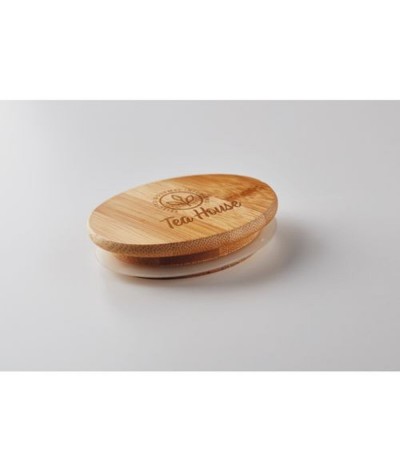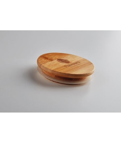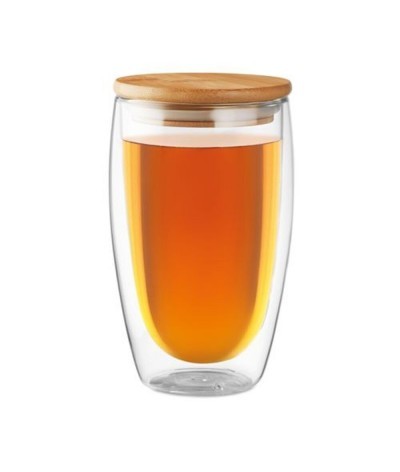 Verre borosilicate à double paroi avec couvercle en bambou et anneau en silicone. Contenance 450 ml. Ne pas laver au lave-vaisselle.