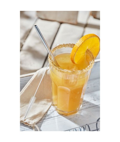 Paille en acier inoxydable : brosse de nettoyage incluse, dans un étui en coton écologique