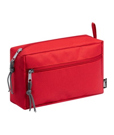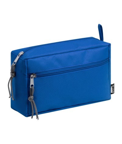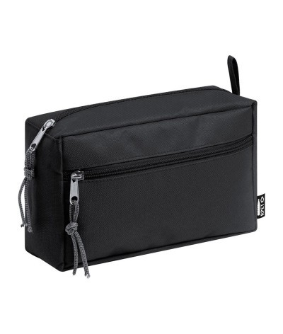 Trousse de maquillage en 600D rPET avec deux compartiments zippés. Labellisée rPET.