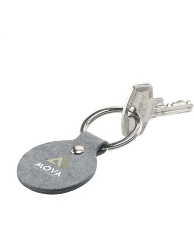 Porte-clés durable fabriqué à partir de fibres de denim recyclées : 70% de déchets de denim, 25% de liants et 5% d'additifs d'origine végétale.
