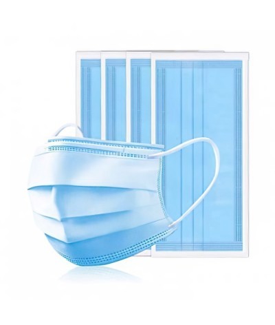 Masque de protection facial non chirurgical à usage unique, avec élastiques auriculaires. - 3 couches (2 couches non-tissés/1 couche de filtration). - Efficacité de filtration bactérienne... Suite dans la description