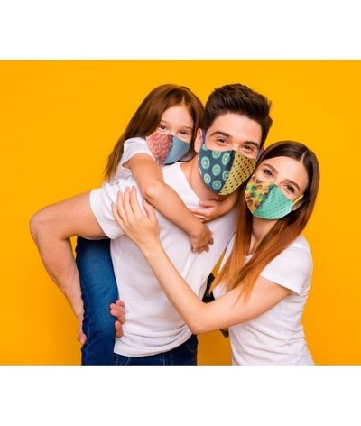 Masque facial à deux couches sur mesure, lavable et réutilisable avec élastiques oreilles ajustables. Impression en sublimation. Taille adulte. Fabriqué en tissus 100% polyester (140gr / m2) et... Suite dans la description