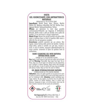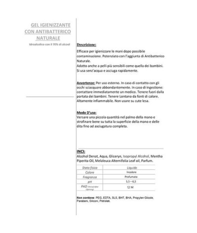 GEL HYDROALCOOLIQUE NATUREL 100 ml avec antibactérien naturel Flacon avec couvercle rabattable Ne dessèche pas la peau grâce à la glycérine végétale. Idéal aussi pour les enfants 70%... Suite dans la description