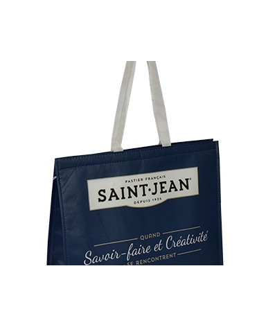 Disponible en PP Tissé ou Intissé avec plusieurs finitions intérieures (aluminium ou toile PP). Facilement réutilisable et nettoyable d’un coup d’éponge.