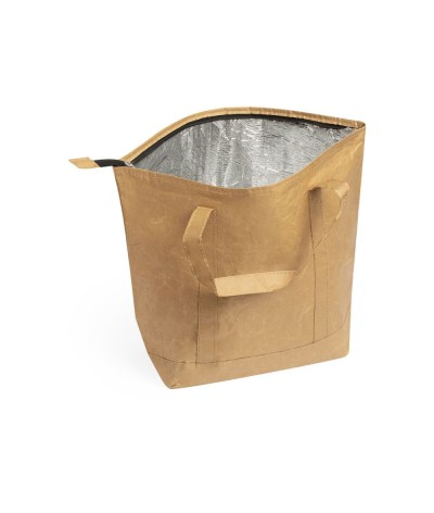 Tote bag isotherme en papier recyclé laminé résistant avec un intérieur en aluminium.