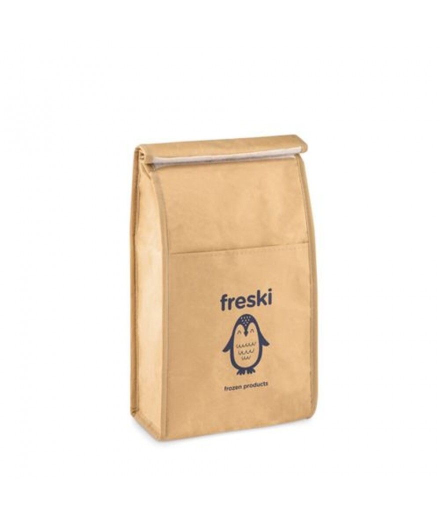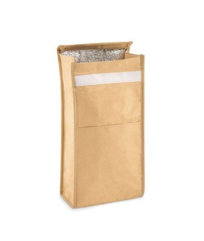 Sac à lunch en papier tissé avec poche frontale. Matériel d'isolation : Couche de mousse PE. Contenance 3L.