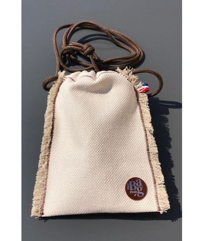 Petit sac, pochette très pratique cousu main par une petite bretonne qui récupère des chutes de tissu haut de gamme (toile de Mayenne, Roche Bobois, ...)